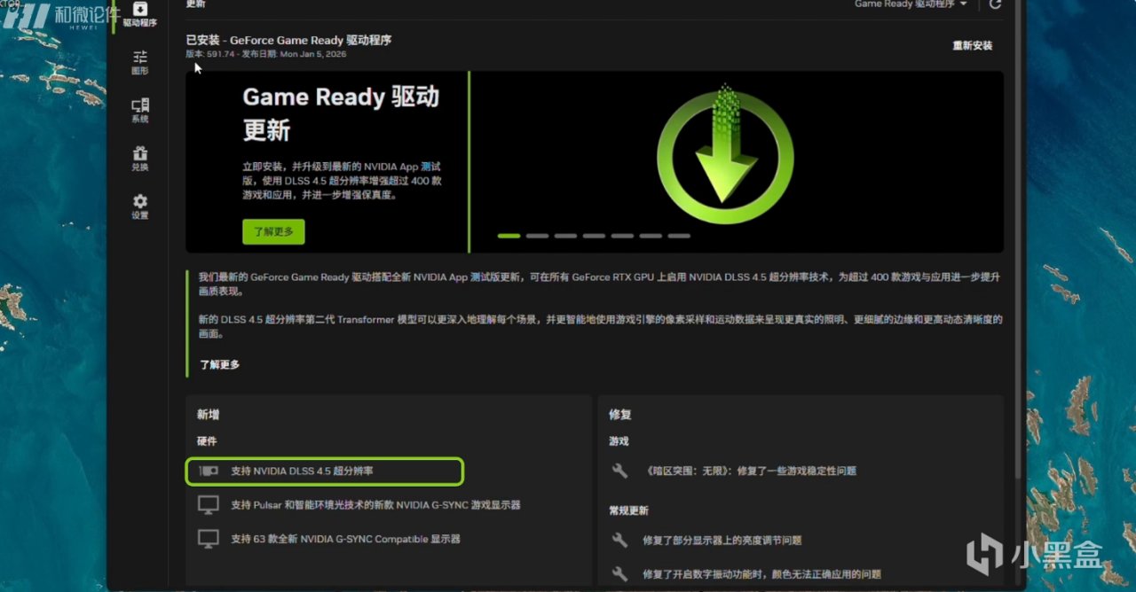 显卡分别搭载的是映众的RTX 5080 X3 OC以及华硕RTX 3060TI G6X 雪豹。显卡驱动均更新至591.74,在驱动下方新增这里就能看到支持NVDIA DLSS 4.5 超分辨率了。我这里就直接使用英伟达APP进行演示,首先点击设置,在最上方点击关于,注意APP的版本号需要时11.0.6.374及以上。接着在下方这里,点击“选择加入以体验测试版或实验性功能”。返回在左侧菜单页面点击“图形”,选择一款支持DLSS的游戏,在最下方的“驱动程序设置”这里,首先点击“DLSS优设-模型预设”,点击自定义,帧生成这里选择最新,最后这项光线重建,支持的游戏同样选择最新即可。