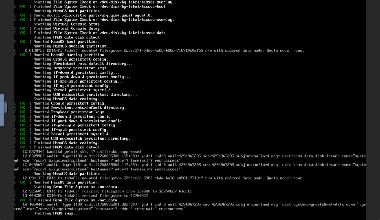 当系统完成所有预装集成的部署后,HA会自动进行一次重启。当你看到界面刷新成下图所示的状态时,意味着底层环境的准备工作已经大功告成,最艰难的部署环节结束了!