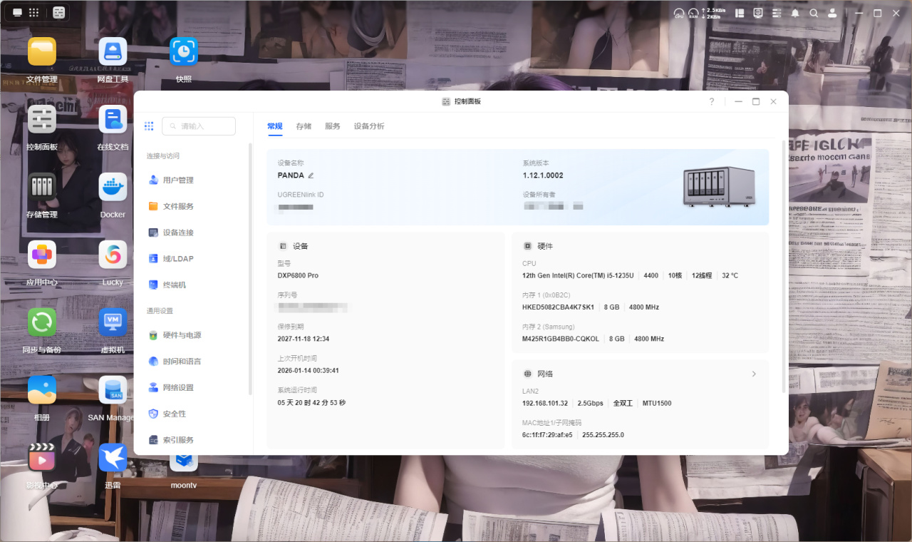 中枢基石(绿联NAS):利用绿联DX6800 Pro强大的性能和虚拟机功能,让智能中枢实现 7×24 小时全天候运行,既是存储中心,又是算力中心。