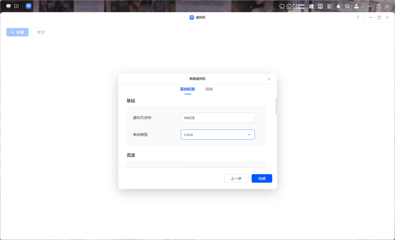上传之后,点击新建虚拟机,选中我们刚刚上传的镜像选择下一步,这时候会让我们选择系统类型、分配资源、硬盘存储以及网络配置。操作系统选择 Linux,随便填,比如HomeAssistant或HAOS都可以。