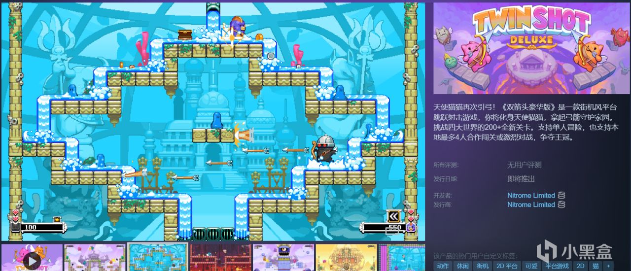 天使猫猫再次引弓!《双箭头豪华版》是一款街机风平台跳跃射击游戏,你将化身天使猫猫,拿起弓箭守护家园。挑战四大世界的200+全新关卡。支持单人冒险,也支持本地最多4人合作闯关或激烈对战,争夺王冠。