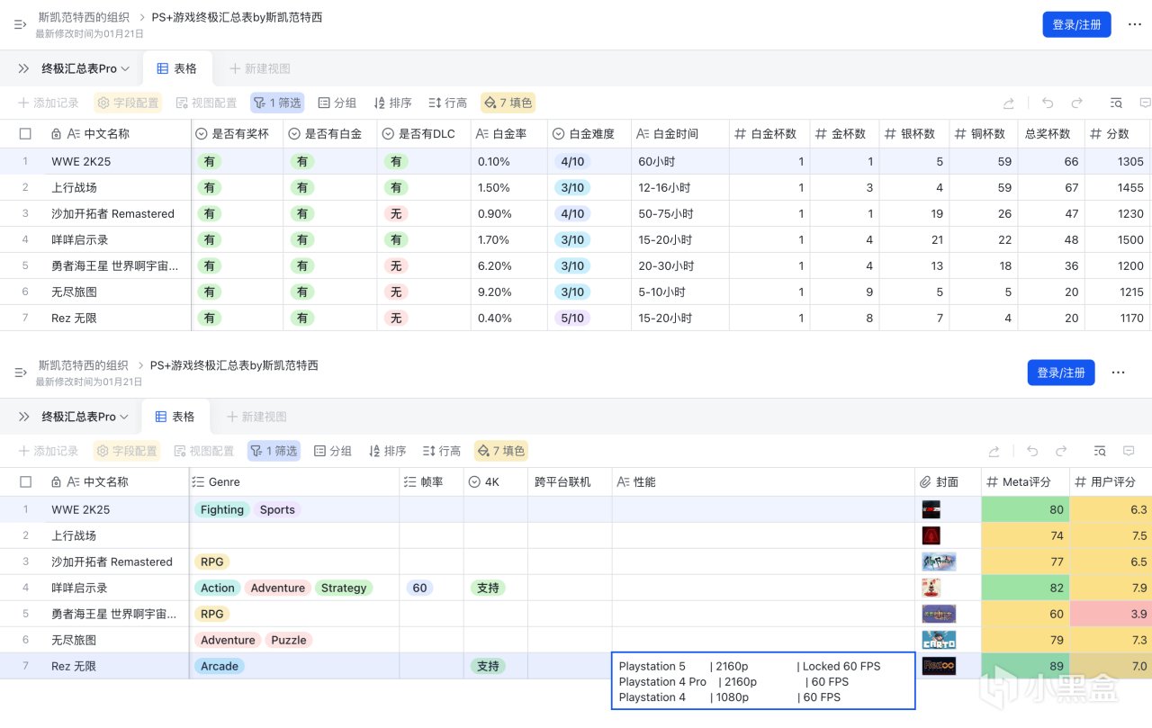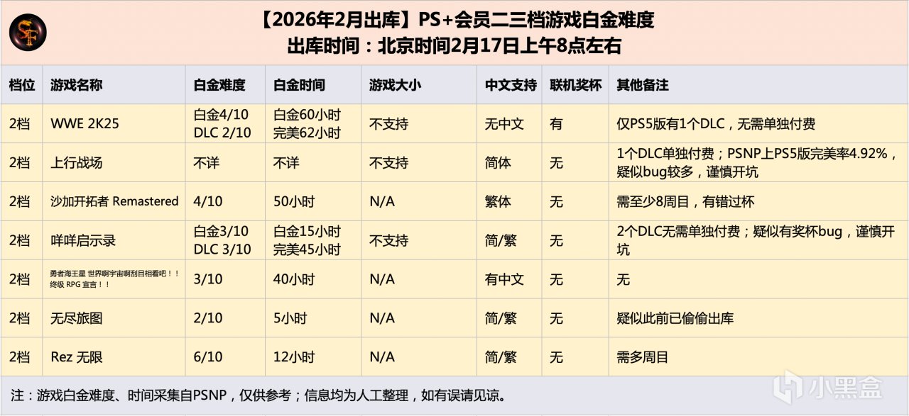 注:遊戲白金難度、時間採集自PSNP,僅供參考;信息均爲人工整理,如有誤請見諒。