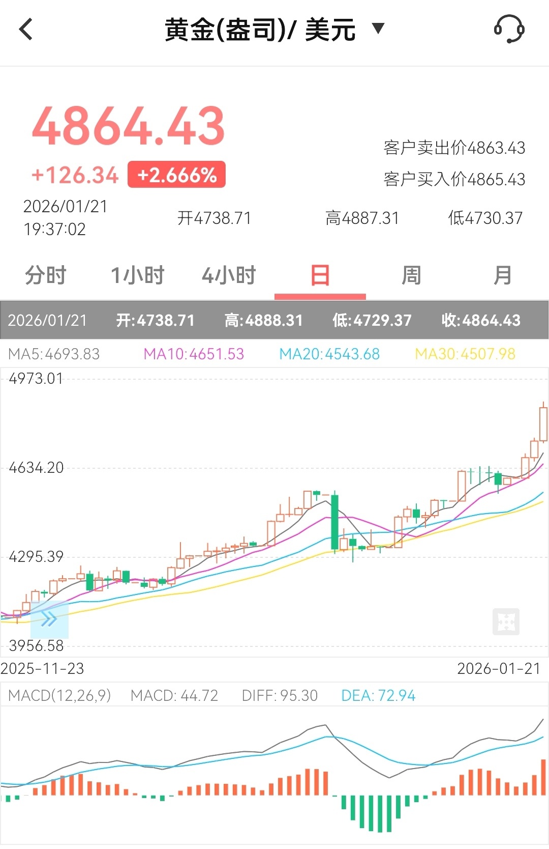 截止发文,目前黄金已经达到4864美元,或许离4900美元不远了?