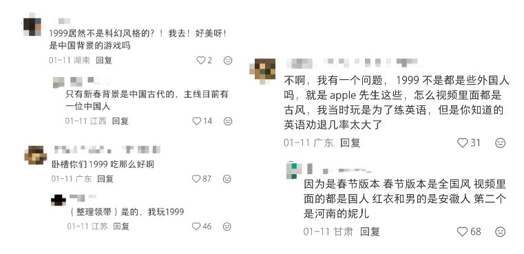 新春版本作为《1999》一年一度的国风主题版本,与其他版本风格差异显著。在深蓝互动扎实的角色塑造与美术审美支撑下,这种反差反而更易吸引目光。本次新春角色亮相后,小红书相关混剪流量颇高,评论区中也充满对深蓝互动的正面评价。即使游戏已上线三年,仍能通过这样的内容表现吸引新接触的年轻玩家。