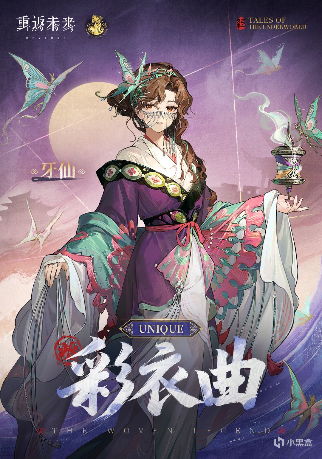 牙仙的皮肤【彩衣曲】则诠释了一位武功高强的江湖高手,擅长以丝线绞杀敌人。遭遇迫害后,她金盆洗手隐居于绣坊,并故意散布剑谱消息,诱敌上门。此前标志性的牙套在【彩衣曲】中也改为充满韵味的流苏面纱。