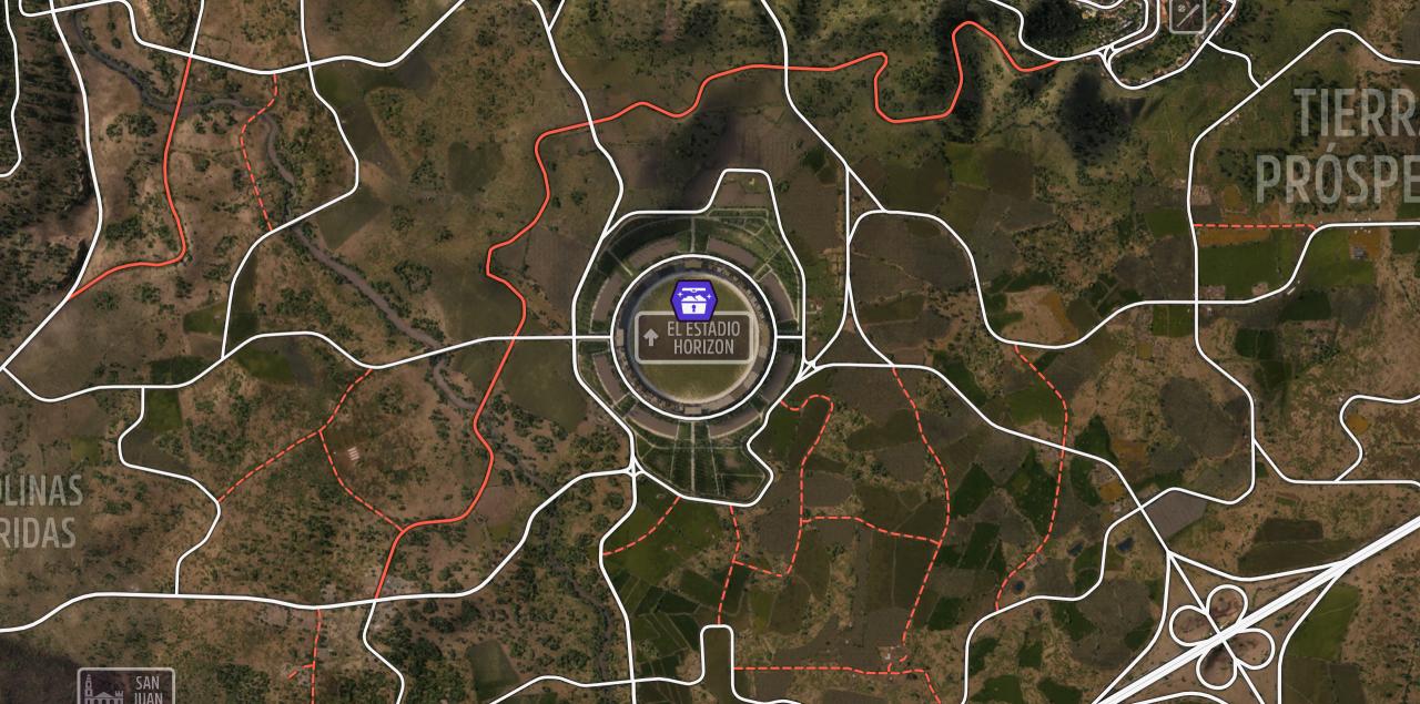 体育场位于瓜纳华托市的左下角,驾驶指定车型进入其内部,拍照打卡即可完成该任务。
