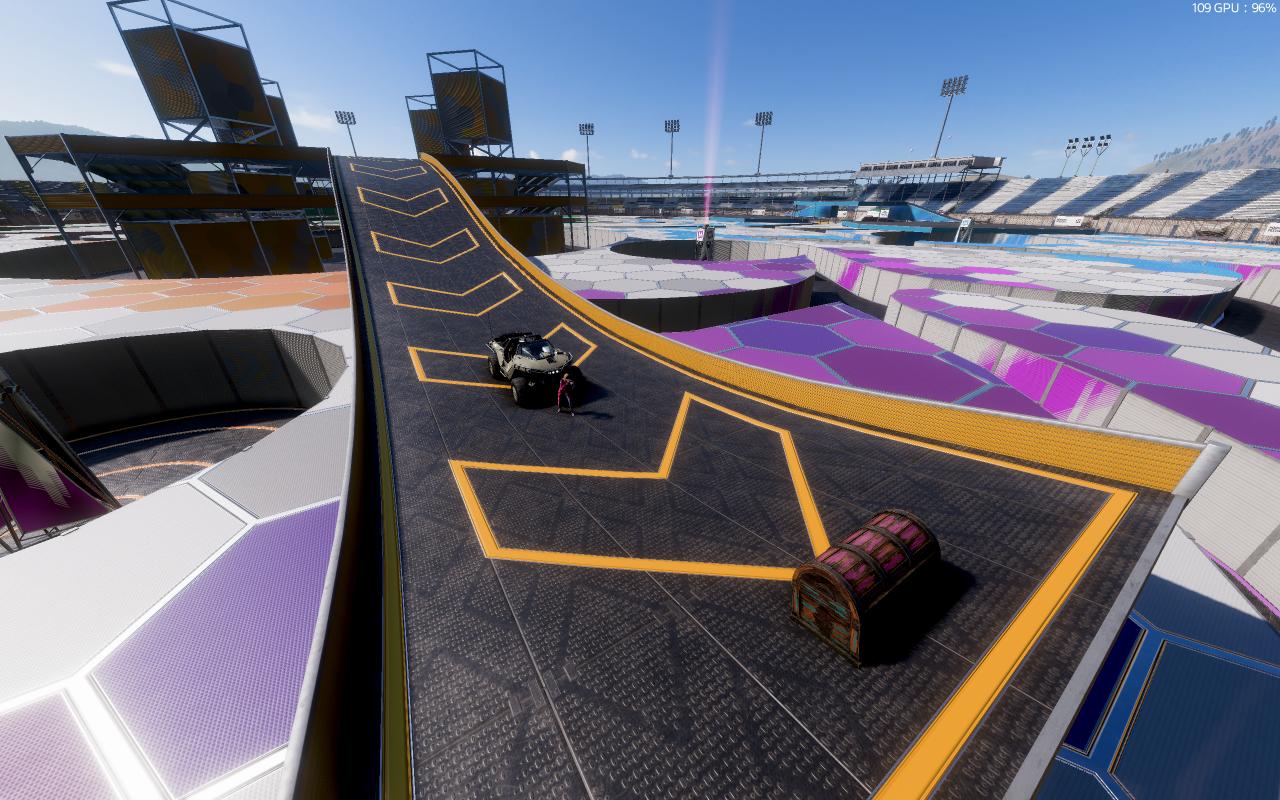 这周的宝箱摆在迷宫中央的塔顶向外延伸的斜坡上,进入中心区域后爬上最高层,跑下斜坡即可找到。