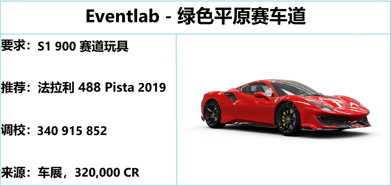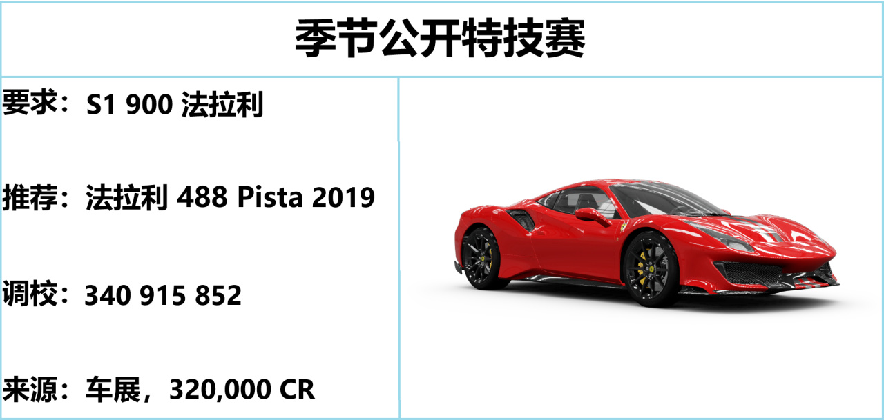 法拉利 488 Pista,季节赛常客而且非常便宜,嗯造就完事,还能跑蓝图和特技。