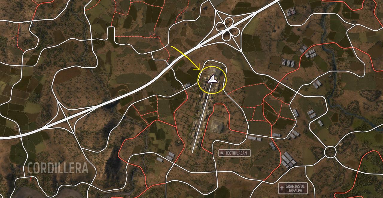 金字塔的位置参考上图,位于特奥蒂瓦坎直线加速赛的终点旁,靠近四叶草立交桥。