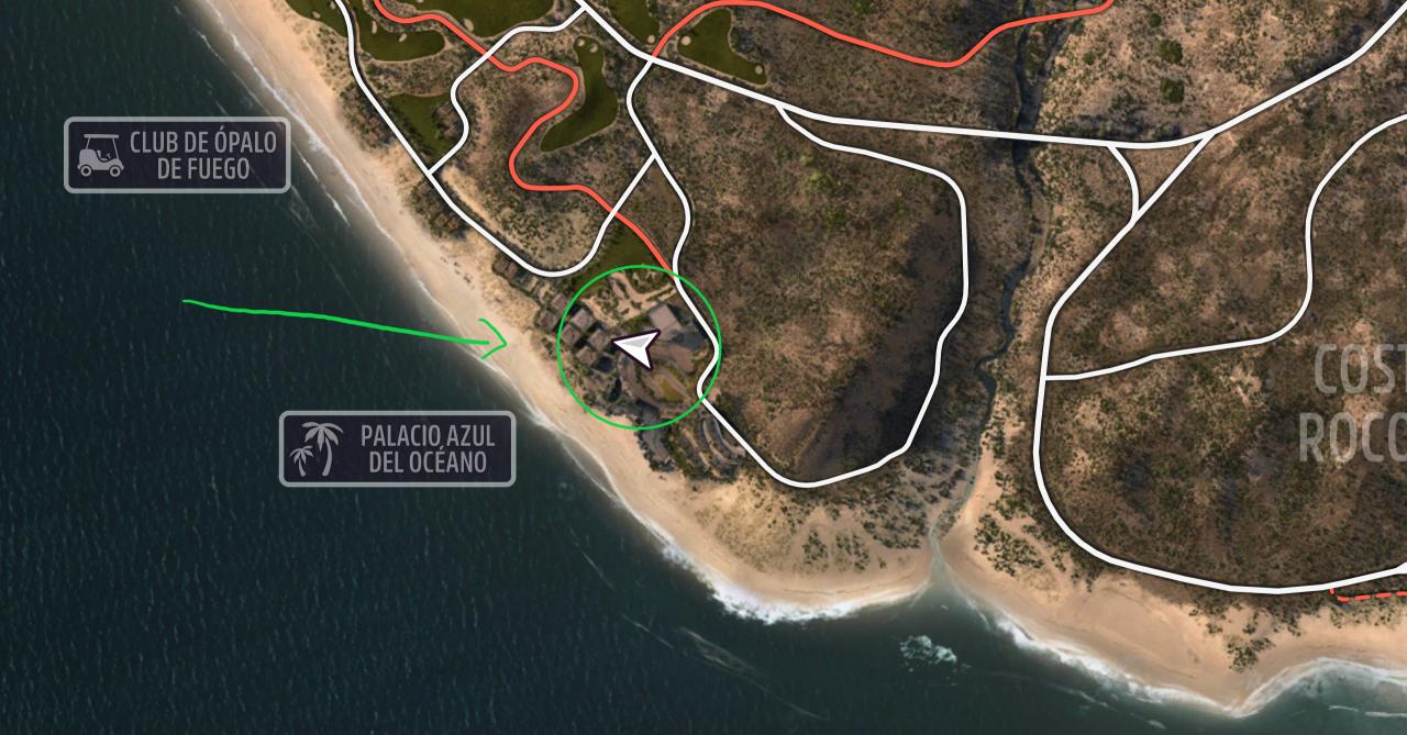 蓝海皇宫在地图左侧海岸边的沙滩旁,具体拍摄地点参考上图的标记处。