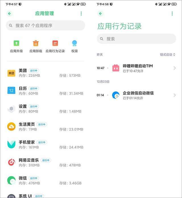 这样就会导致你的手机运存被大量 APP 一直占用,最骚的是,某些 APP "担心" 你接收不到消息,会相互唤醒启动来接收消息推送,特别是全家桶。