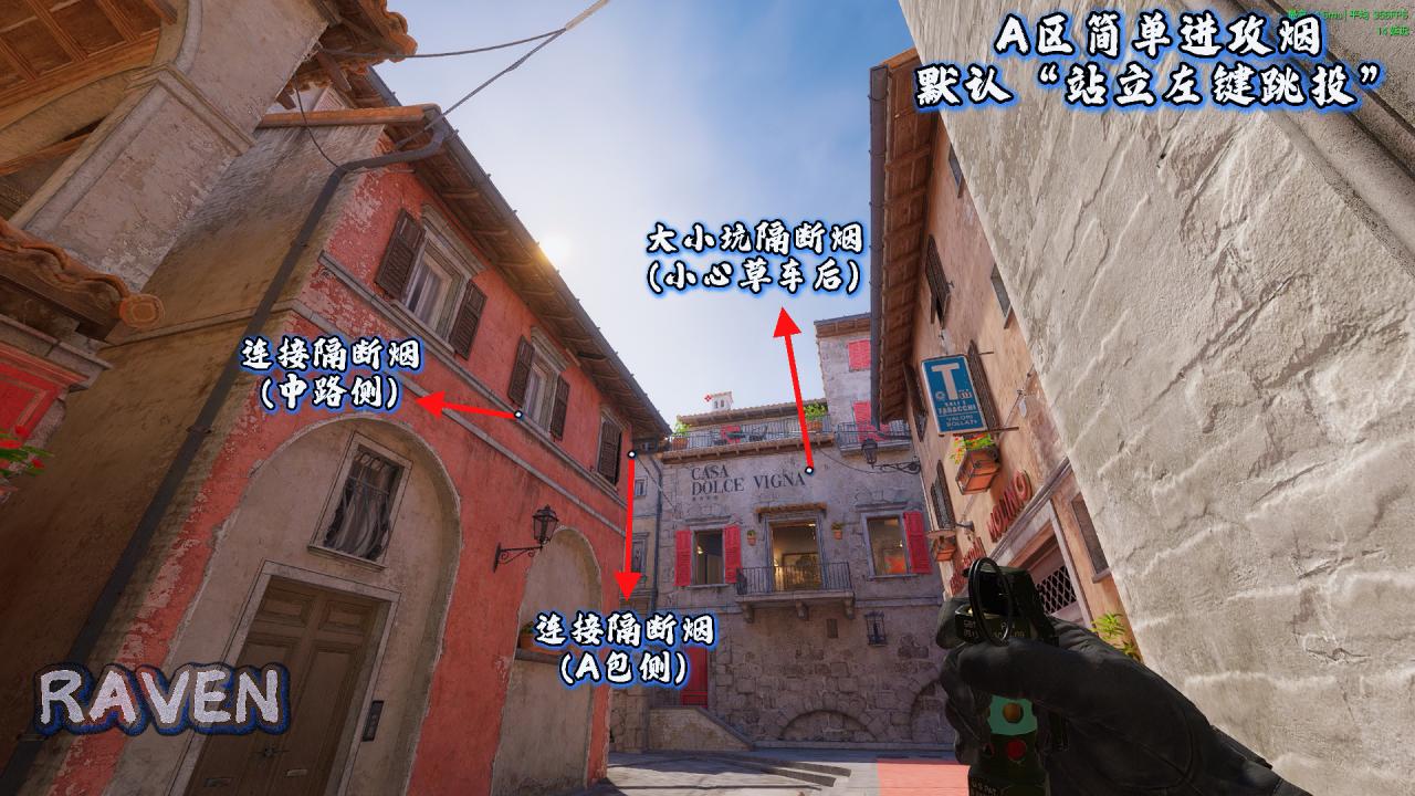简单又常规,一般来说优先丢大小坑隔断烟,方便队友在A1展开道具,对于进点的帮助比较大。
