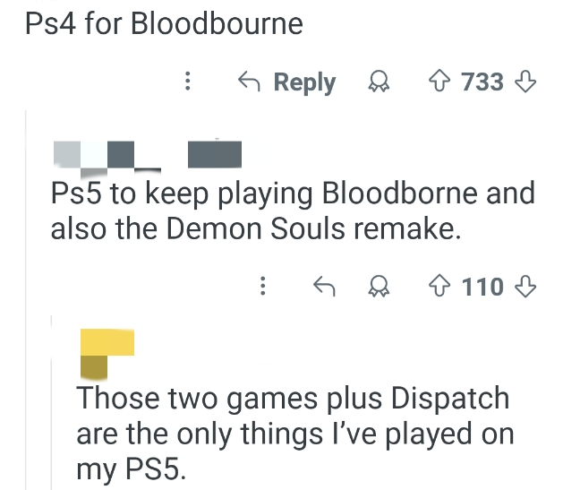 买PS5是为了继续玩《血源诅咒》以及《恶魔之魂》重制版。
