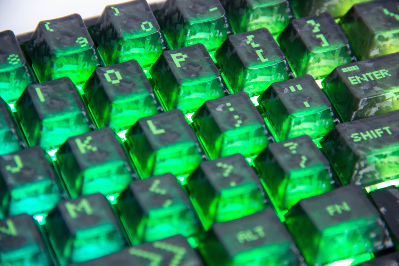 鍵帽還做了像素風字符,搭配木綠色的配色點綴,整體是黑色+木綠的組合,相當有辨識度,看得出這次在審美上是用心了。