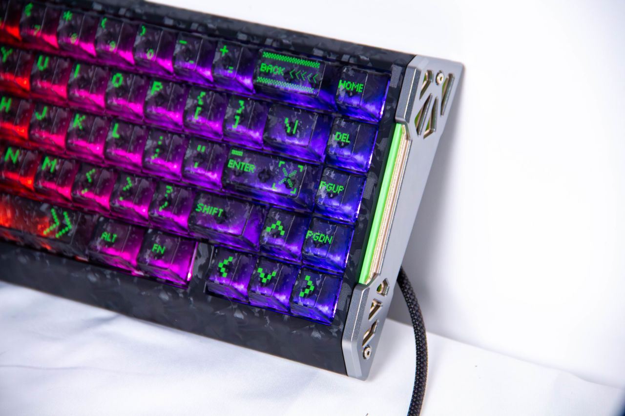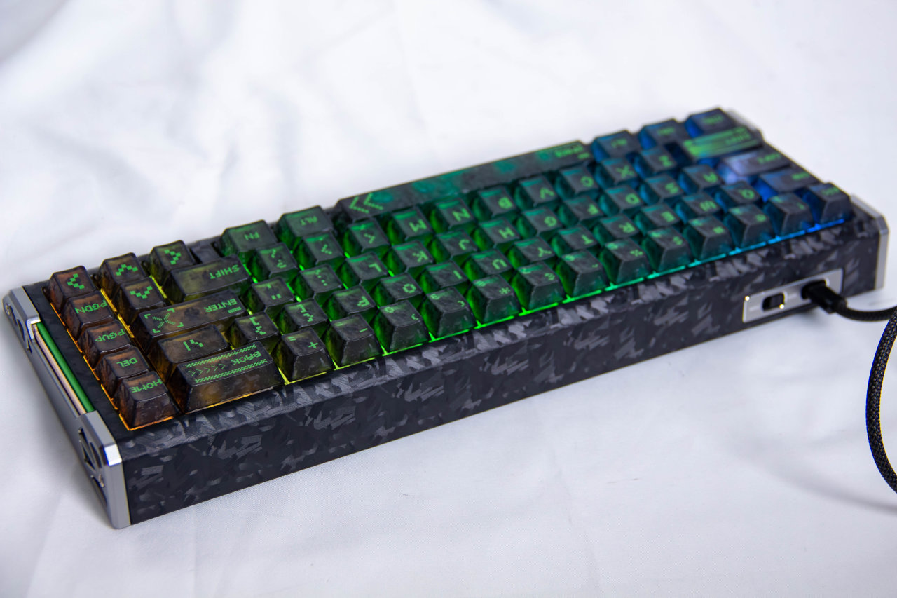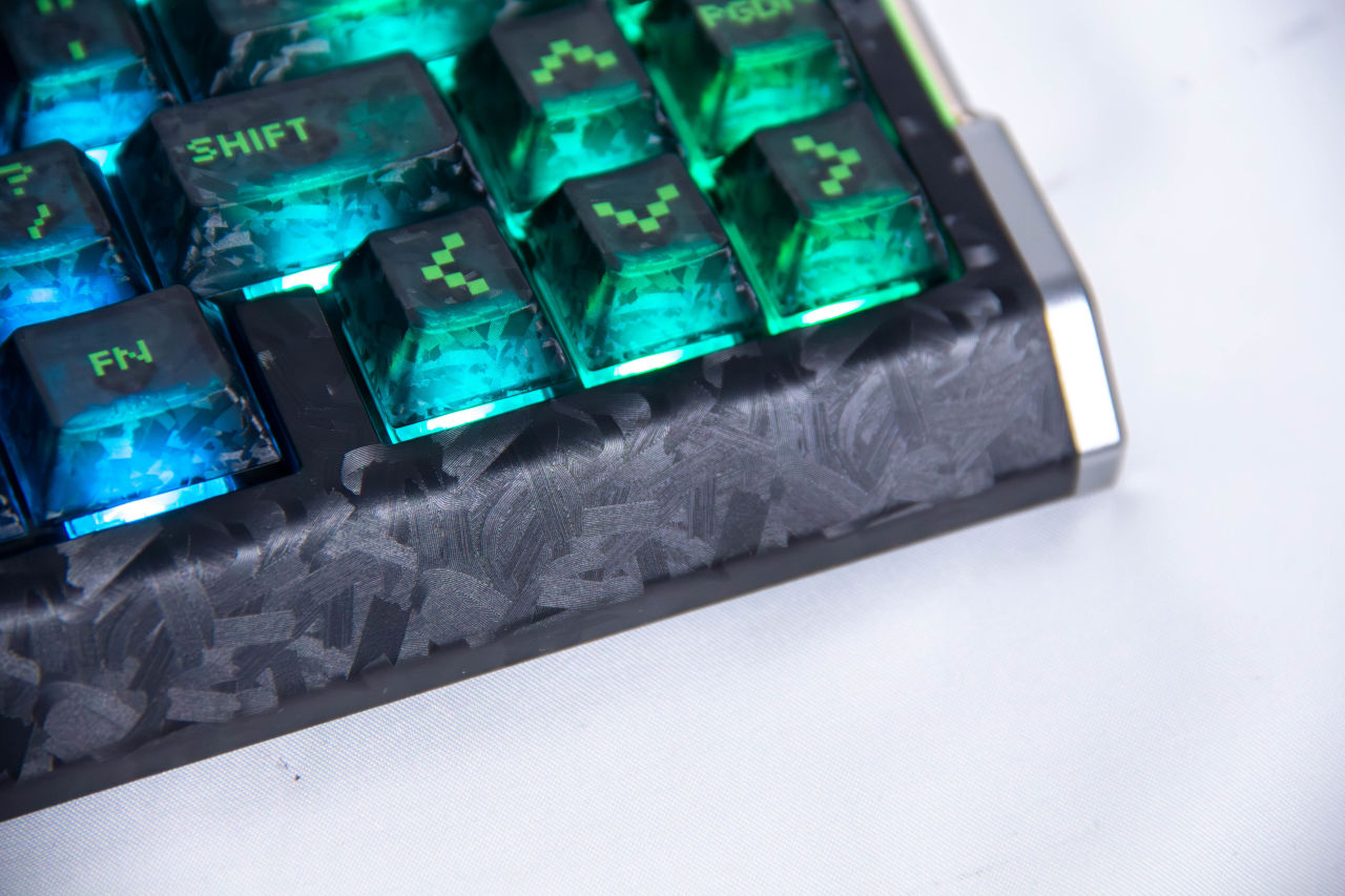 我這把是“鍛碳黑”配色,外殼和鍵帽上都做了非常精緻的鍛碳紋理。