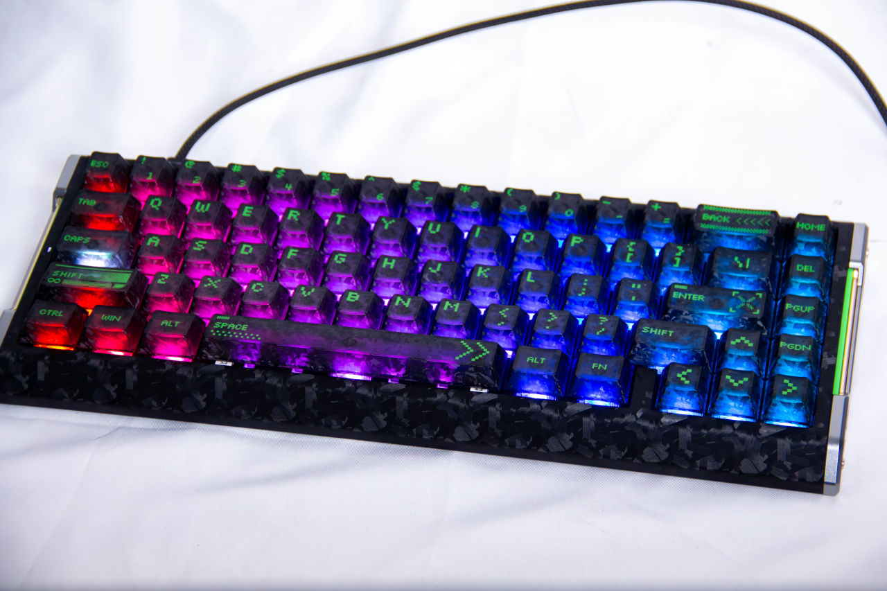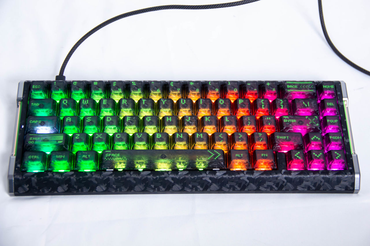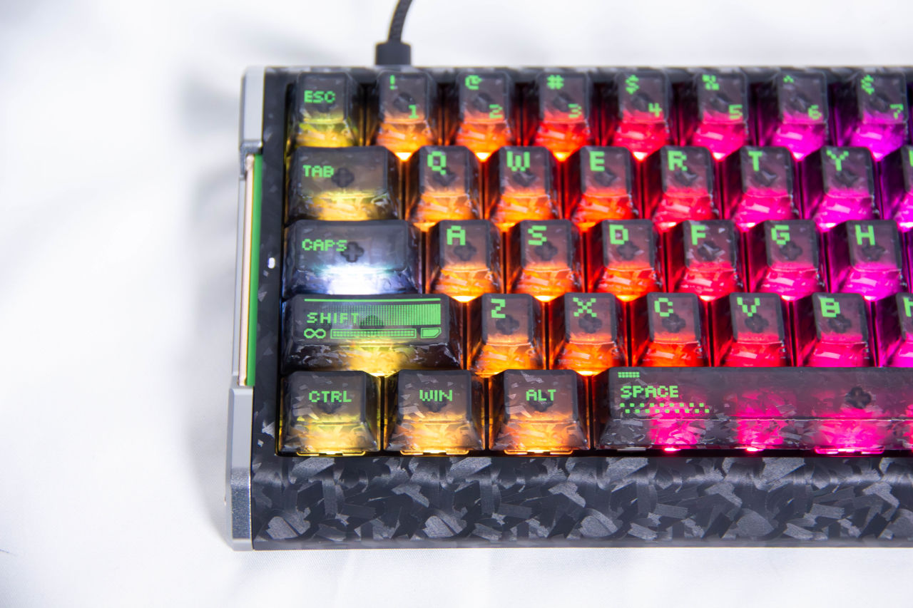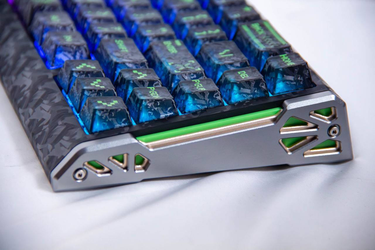 我這把是“鍛碳黑”配色,外殼和鍵帽上都做了非常精緻的鍛碳紋理。