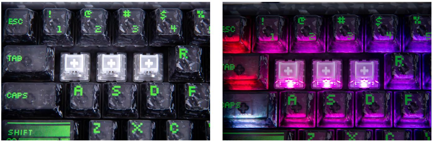 我這把是璃玉磁軸,大開口的透明上蓋對RGB燈光很友好。