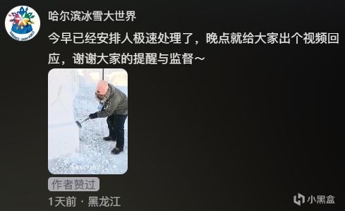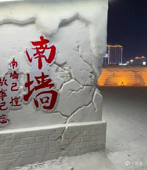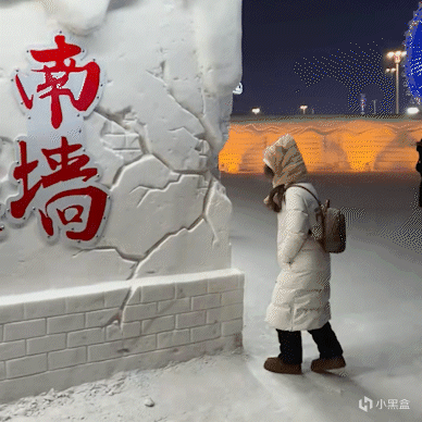 然后网友“田了个小田”在冰雪大世界里就看到了这个南墙,非常激动,就要去拍个照。
