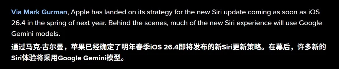 去年就有消息,说 Siri 新架构里的查询规划、知识搜索和总结系统中的部分,来自 谷歌的 Gemini 模型。