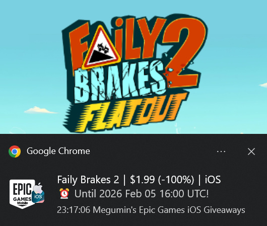据国外网友爆料,下周移动端喜加一应该为《刹车失灵2》。于北京时间01.30,00:01开始领取!