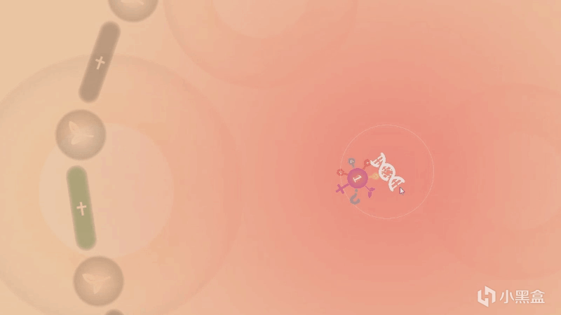 此外,细胞膜的状态是会被改变的。当每一个单向门都被病毒激发过之后,细胞就会凋亡。在关卡中我们轻则失去一个复制工具,重则损失所有细胞中所有的病毒单位。