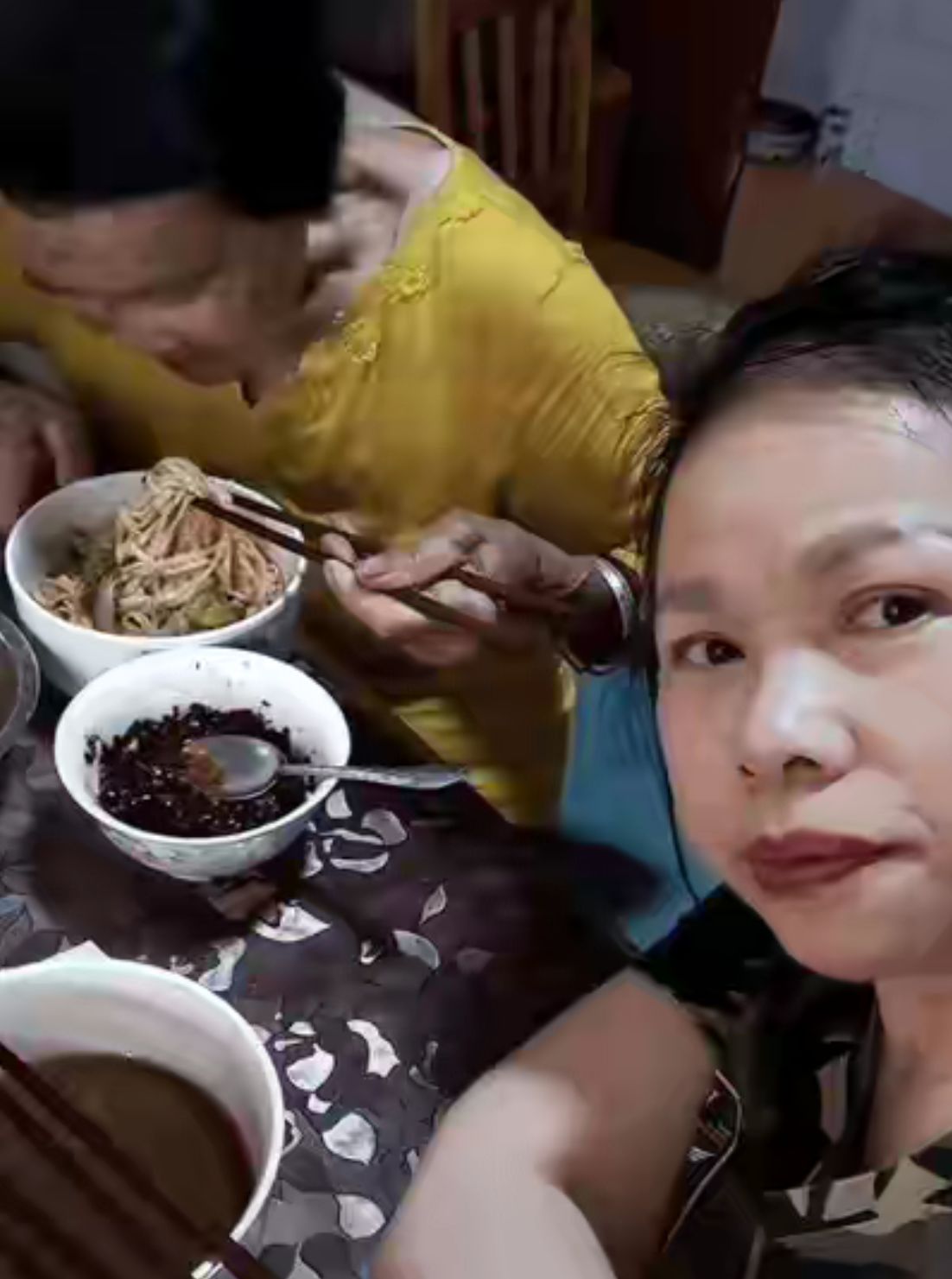 她写陪伴母亲吃面: