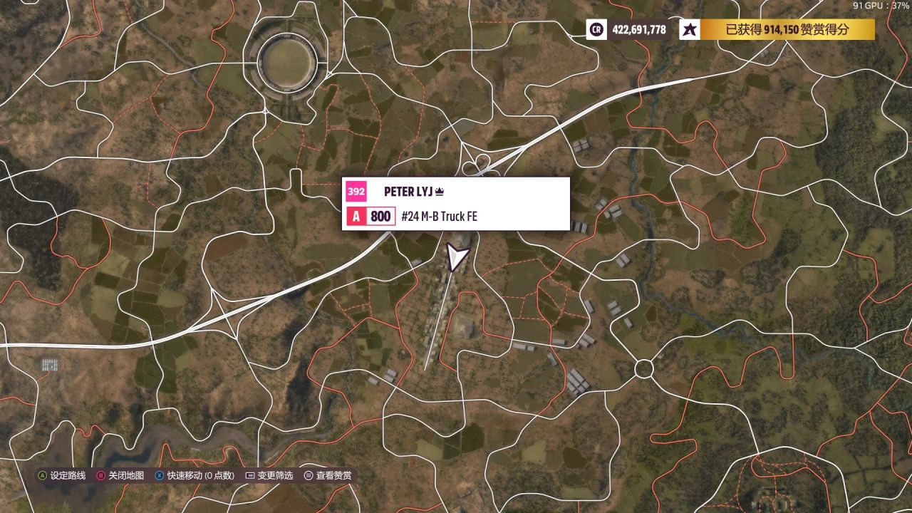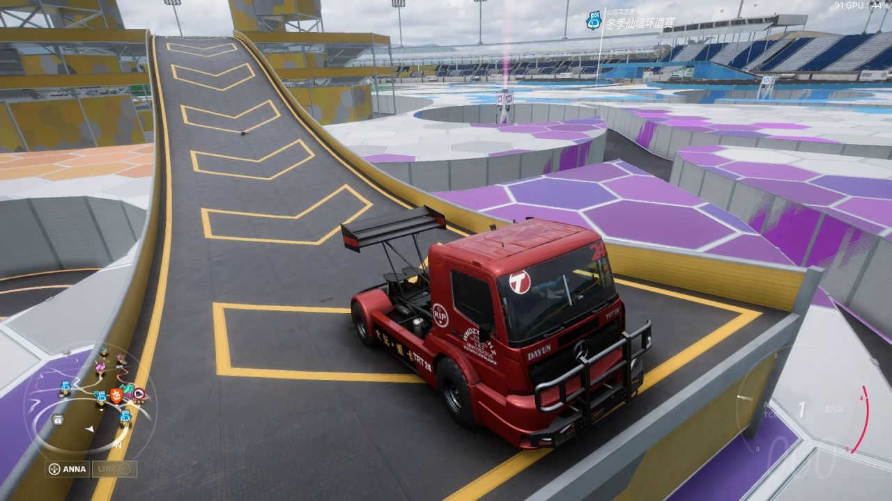 比較有拋瓦的大皮卡,過特技挺適合的。這個測速起步點選在右上方泥地彎道處正好能過。