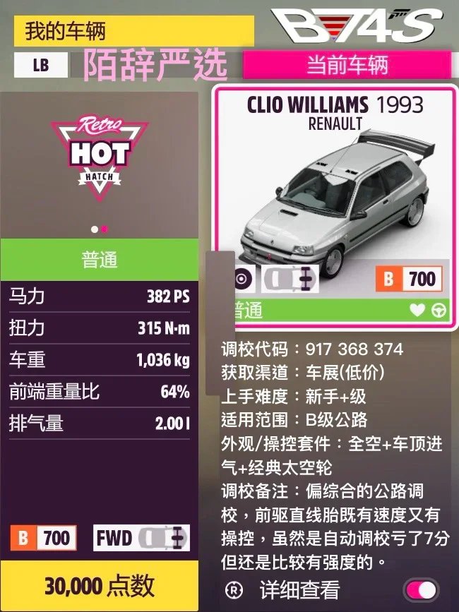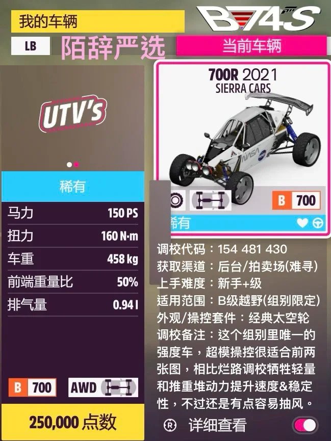 這次周馬拉松倒沒啥要求高性能的地方,就留B級了,等級再高跑公路操控就不夠用了。然後這兩期老是有卡玩不成周馬拉松某關的bug,大部分情況下重啓下就行了,再不行那我也不知道怎麼解。