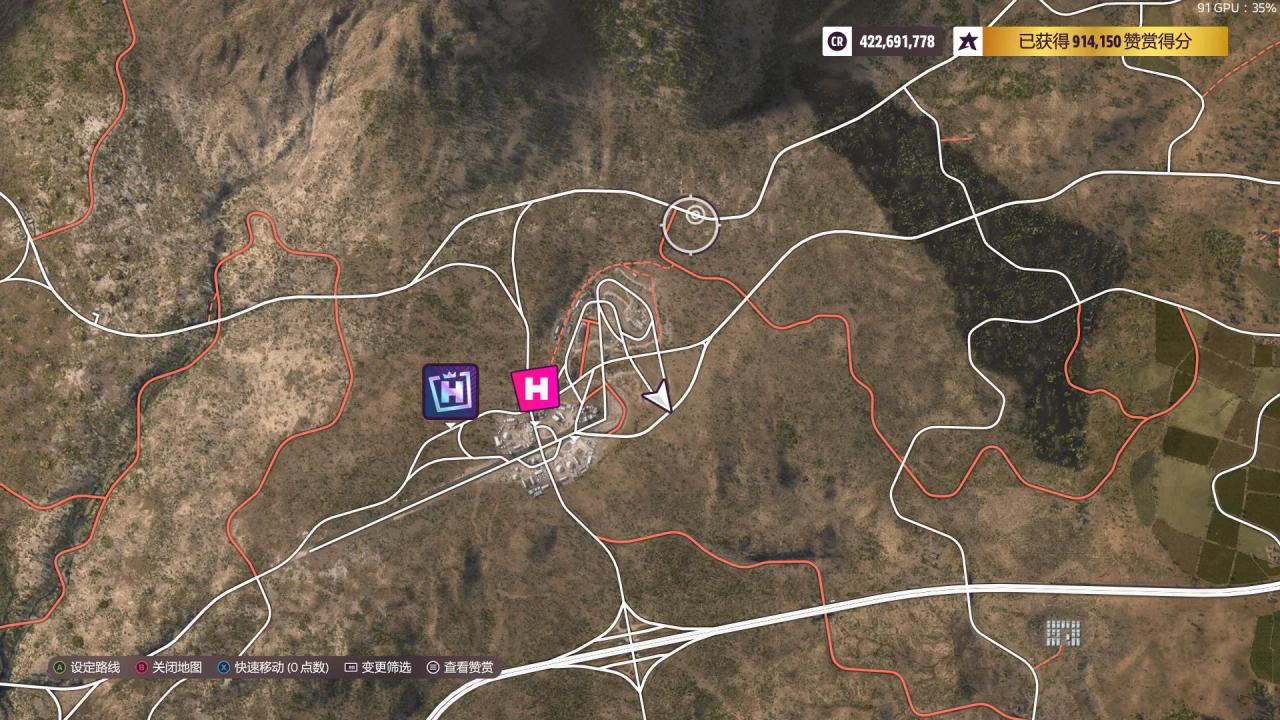要求在上圖金字塔的位置拍攝任意無限制越野車(就是錦標賽2的組別,用這輛綠貓就行)和金字塔的合影。寶箱位置如下圖,需抵達迷宮中央塔頂端再開過去,迷宮速通路線鏈接迷宮路線參考