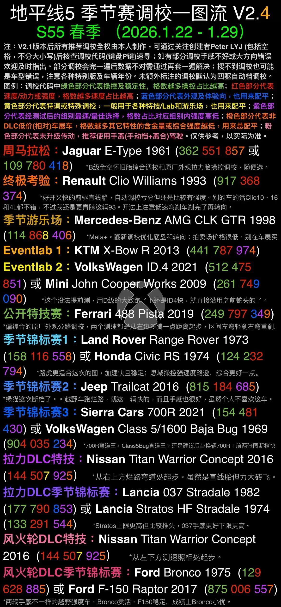 地平線5 S55春季季節賽攻略(2026.1.22-1.29)