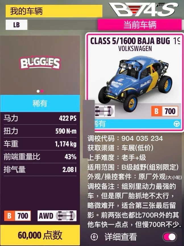 兩輛車兩個極端,700R操控王、Class5Bug直線王,前兩張操控圖700R有不小的優勢,第三張就屬於Class5Bug了。沒有700R的話推薦去後臺換一輛,低等級全地形操控王。不過700R物理比較不穩定,過坡過障礙物很容易抽風。