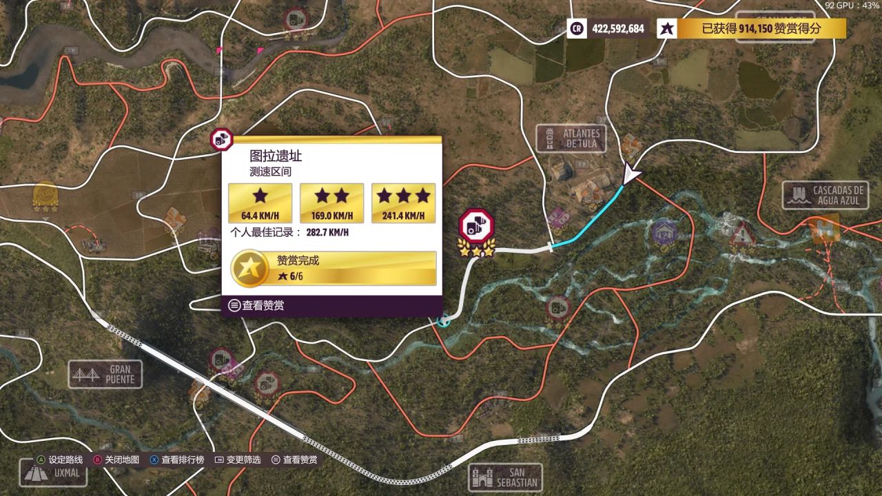 第四關維持161kph的時速一分鐘,推薦去高速上跑,大致所需距離如圖。