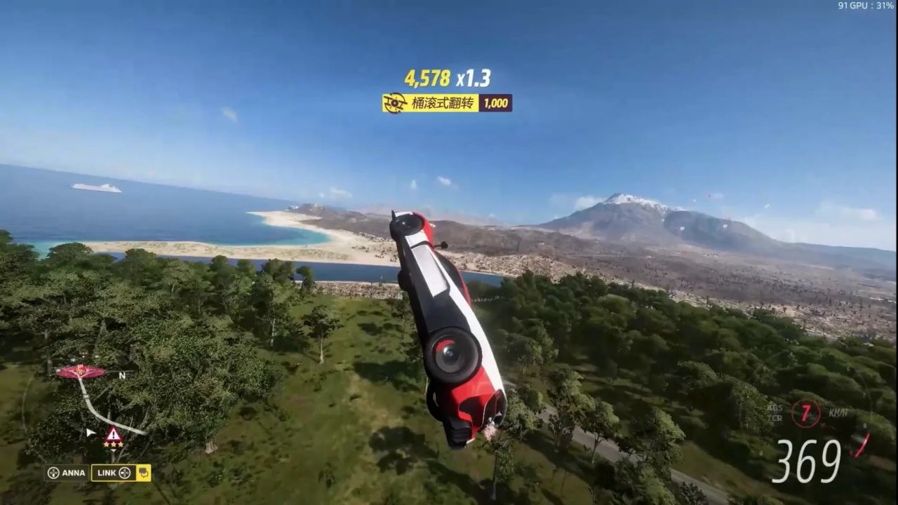 達成一次“桶滾式翻轉”技術。前面用F5飛了個,鏈接桶滾參考。簡單來說就是以小半個車身(半邊輪子)過坡並在空中自轉一圈。