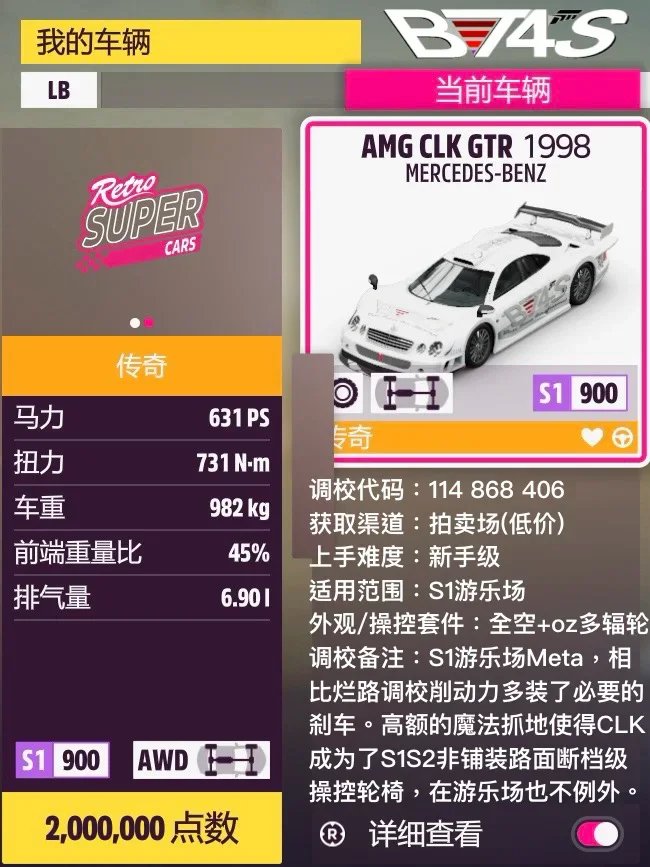 季節遊樂場又來了,S1無限制奪旗。正好延續了上一季的全是生存和全是國王,不過說實話這種有點無聊了,不如正常摻着來。S1之前複測是CLK斷檔最強,翻新了下調校,優化底盤和轉向能力。奪旗其實對車的要求沒那麼高,之前4代不少玩具車成績最好的地方就是奪旗;本來想搞幾輛玩具的,可惜沒時間了只能自己玩玩了。打法的話一直有一個誤區就是防守的時候“堵橋”堵那個出旗點。關於防守應該防在得分圈周圍而不是出旗點以及兩者的利弊等問題懶得再發表長段論述了,總之正常局堵出旗點不會是一個好的選擇。那麼什麼時候是呢,1、兩方實力差距懸殊,你方穩贏的情況下去堵出旗點折磨對面心態讓對面退完速通;2、實力差距較小且都很高,你方多一個不講武德的去堵擾亂一點點對方節奏增加勝率。但是兩者都不算常見,普通局去堵只能欺負不會玩的新手,會玩的隨便就過去了。不過防得分圈也不算簡單,要橫着車身前後移動,手動檔會比較難受。不多說了,自己去試試吧,其實主要還是看隊友的。然後誰敢在遊樂場用除了S2bttb以外的拉力胎我直接舉辦+拉黑。 開玩笑的管不到這麼多,不過除了bttb外拉力胎跑不了非鋪裝路面,以及bttb跑起來也難受,所以別用。