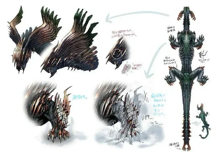 近期,《怪物猎人:荒野》官推分享了部分游戏设计原画。