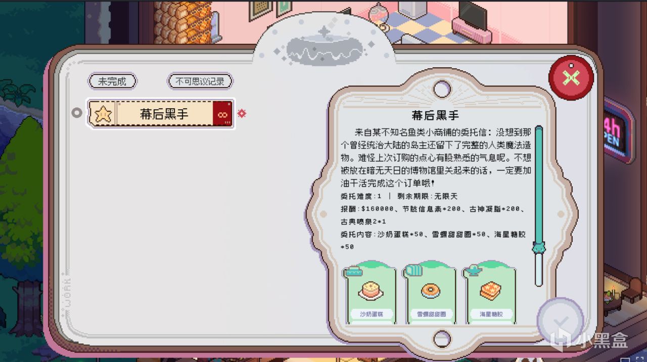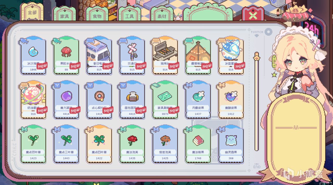 价格经常变动,这点是我觉得游戏比较有新意的地方。做出来的面包和点心,不是无脑卖给NPC就完事了。游戏内置了一个动态的市场。有时这个甜品会涨价,有时这个甜品会跌价,你要趁着涨价多做些卖钱,也要注意不能无脑囤货,食品是有保质期的。