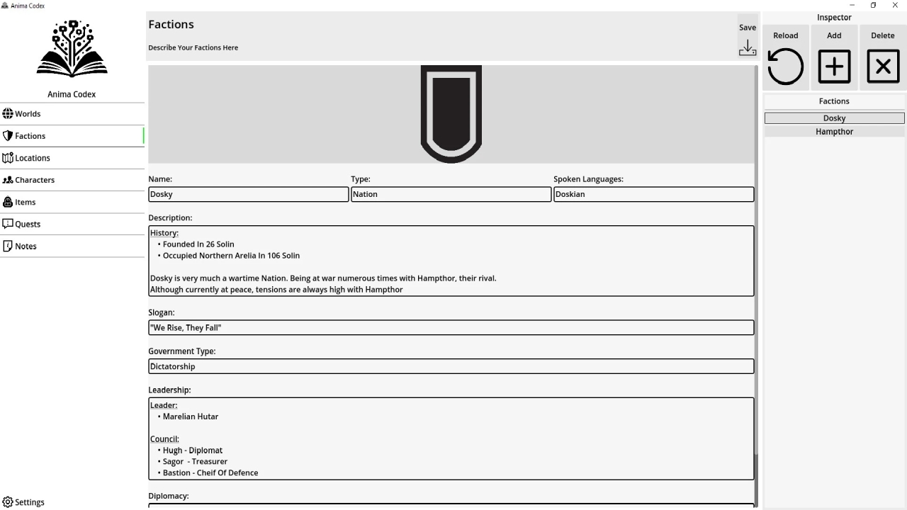 世界構建:可創建並描述完整世界觀,設計陣營、國家與勢力。