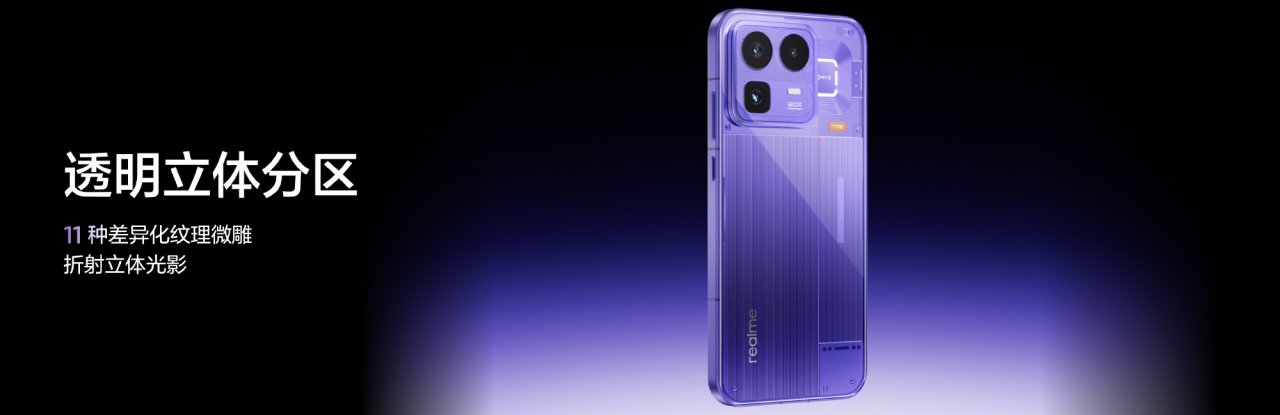 真我 Neo8采用透明 RGB 设计,全新透明立体分区工艺,雕刻 11 种深浅不一的纹理,让光影在背版上折射出不同的光彩,还雕刻有 Make it real.的铭牌,并具有金属中框、玻璃后盖、优雅大 R 角、超窄视觉四等边等旗舰形态,提供赛博紫、起源白、机甲灰三款配色。