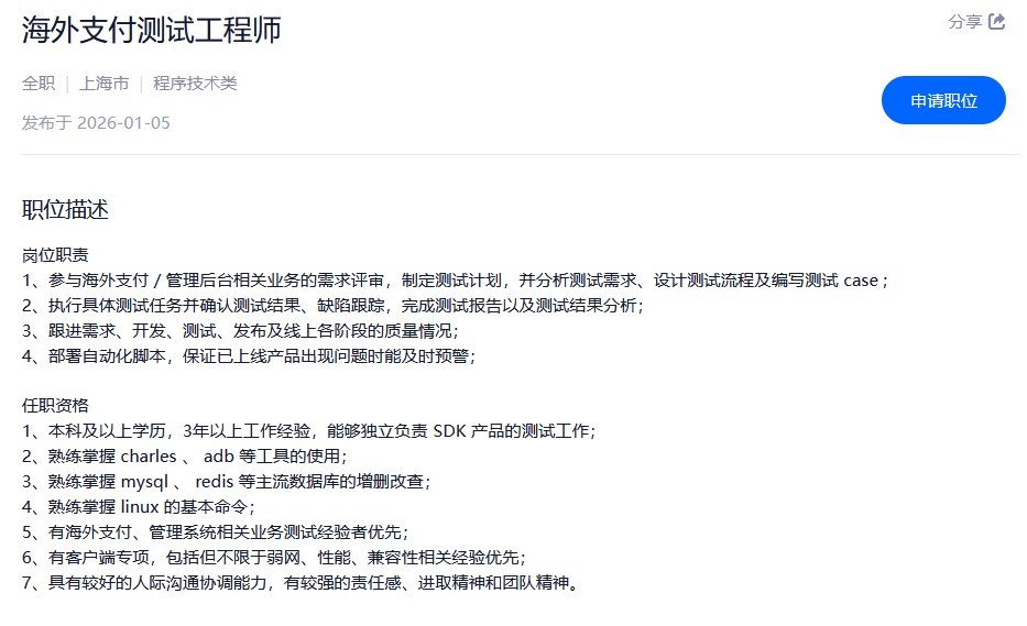 2026-01-05:海外支付测试工程师