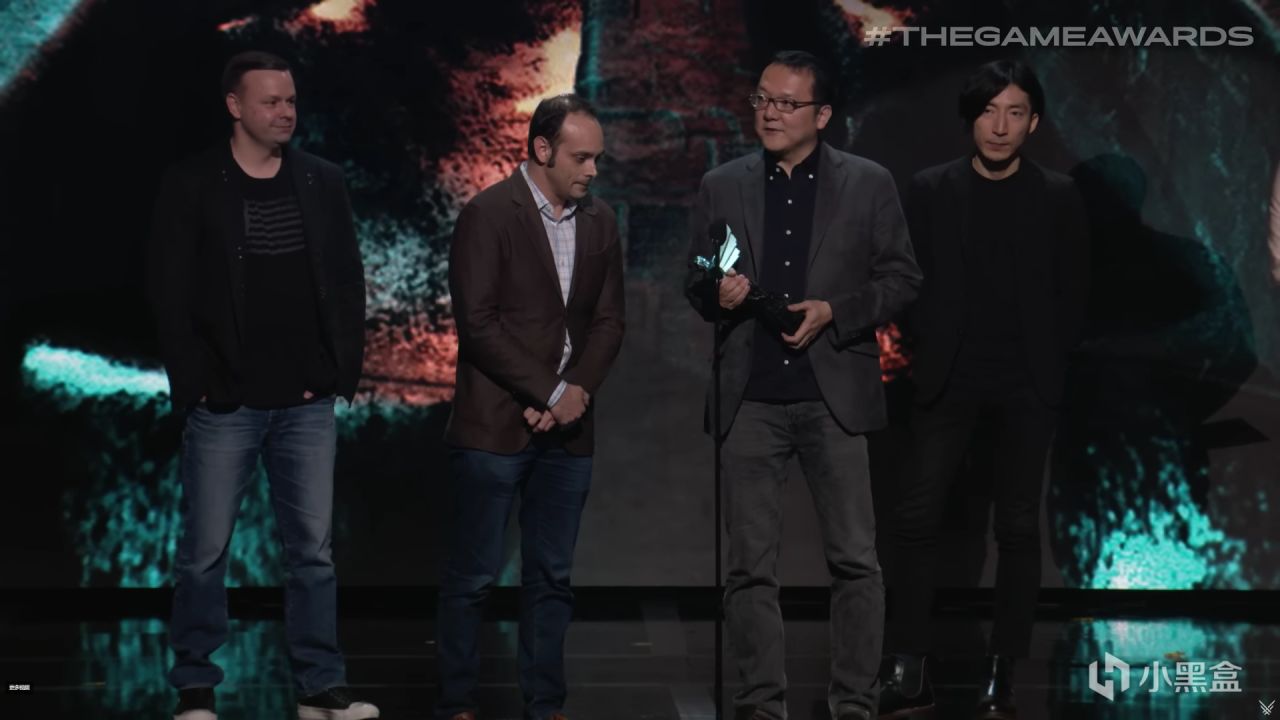 宫崎英高: ”非常感谢!我认为,这份荣誉同时属于《艾尔登法环》全体制作人员,属于来自FromSoftware的每个人,所有的协作人员,当然也属于乔治马丁,是他为这部游戏创作了出色的神话背景故事。在本作的开发过程中,我们遭遇了很多困难,所以作为游戏总监,此刻我感到无比欣慰,也许现在不是说这话的好时候,毕竟这是领取TGA年度游戏奖项的场合,但我已经下定决心了,我想制作更多比这部游戏更有趣的作品。至于《艾尔登法环》,我们还想在游戏里尝试一些更多的内容,所以,能得到年度游戏奖,对我们而言也是莫大的鼓舞。最后,我想把最真切的感激之情献给全体粉丝们,献给那些玩过,爱过,支持过这部作品的玩家们,我们倾尽全力制作游戏就是为了你们,非常感谢!“