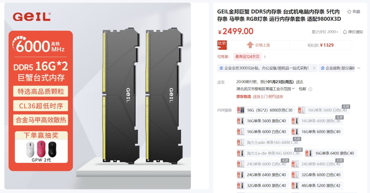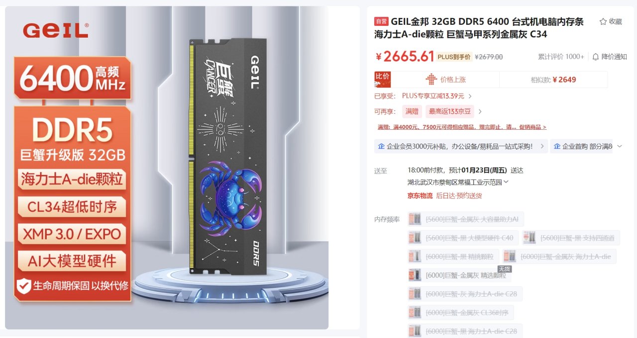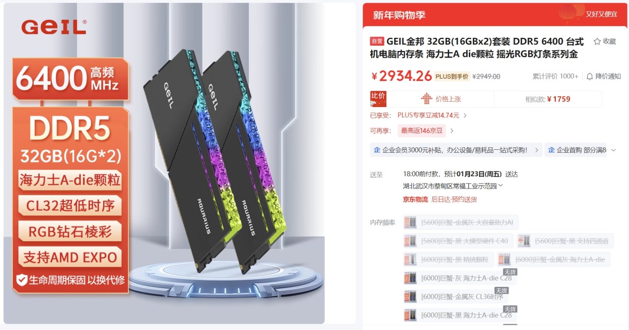 在拼多多上多蹲蹲,刷刷券,现在内存这个价,哪怕省下50、100都值得。