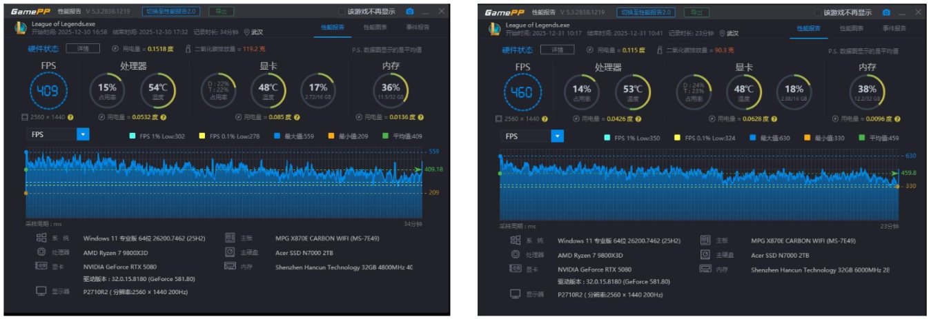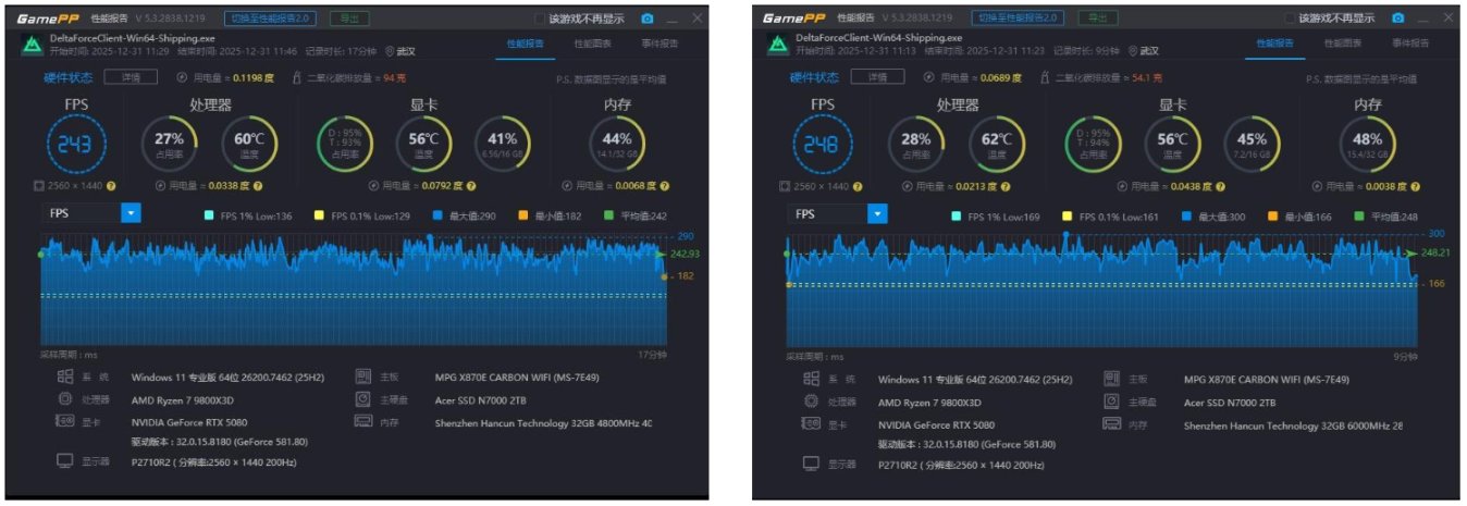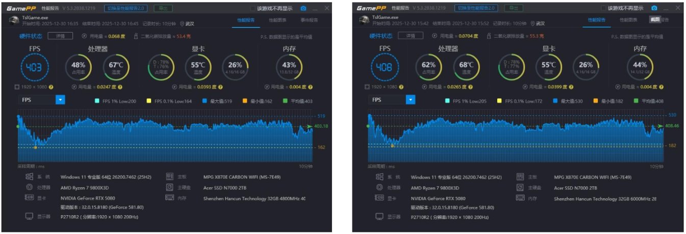最后看一下4800和6000的吃鸡,4800频率和6000频率的平均帧几乎一样,甚至LOW帧数也差不多。在这个游戏至少在9800X3D上没那么明显。