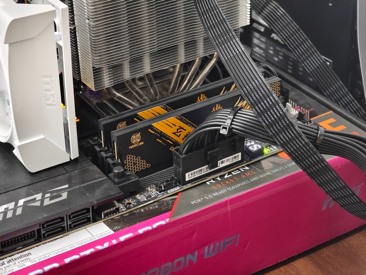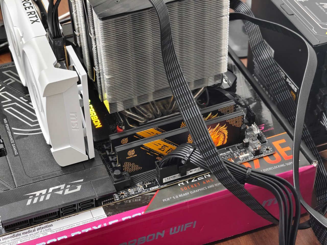 上机一次点亮,使用微星X870E Carbon主板+9800X3D(手头没有intel平台了,只能用这个)