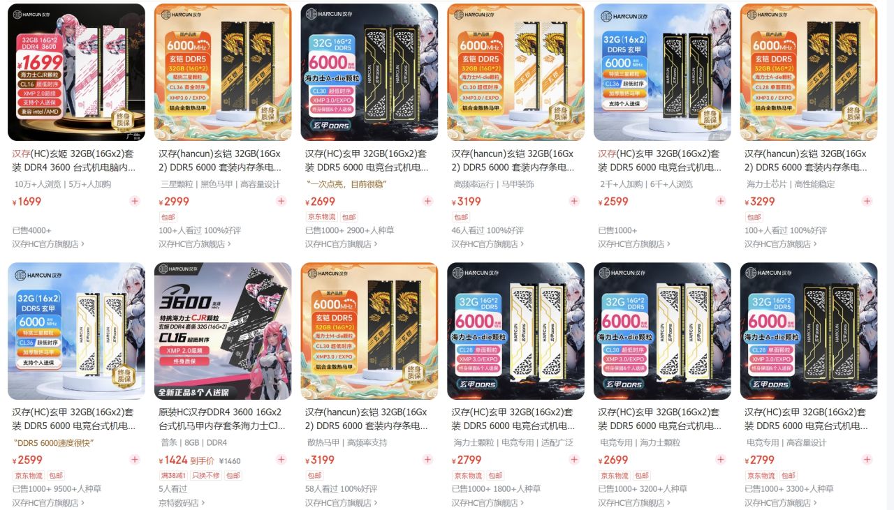 比如我最近搞到的一对 汉存 玄铠的DDR5 6000 CL28套条。只要颗粒来源靠谱,这些品牌没啥不能买的。