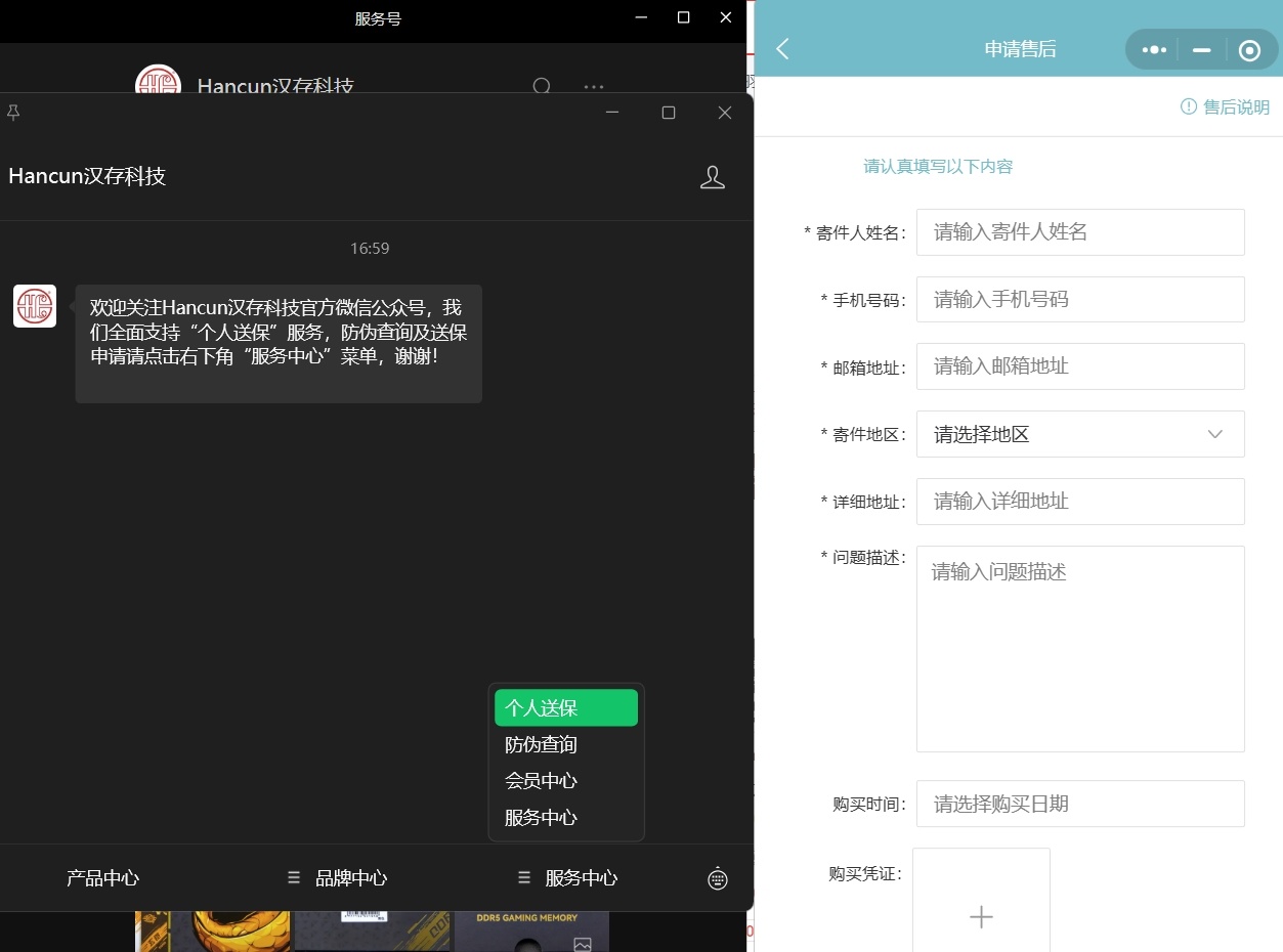 售后方式是走公众号,找到“服务中心”‘——“个人送保”——“申请邮寄”,然后就可以填写信息了,需要购买凭证,如果你是“朋友赠送”,我建议你要一下购买记录的截图。