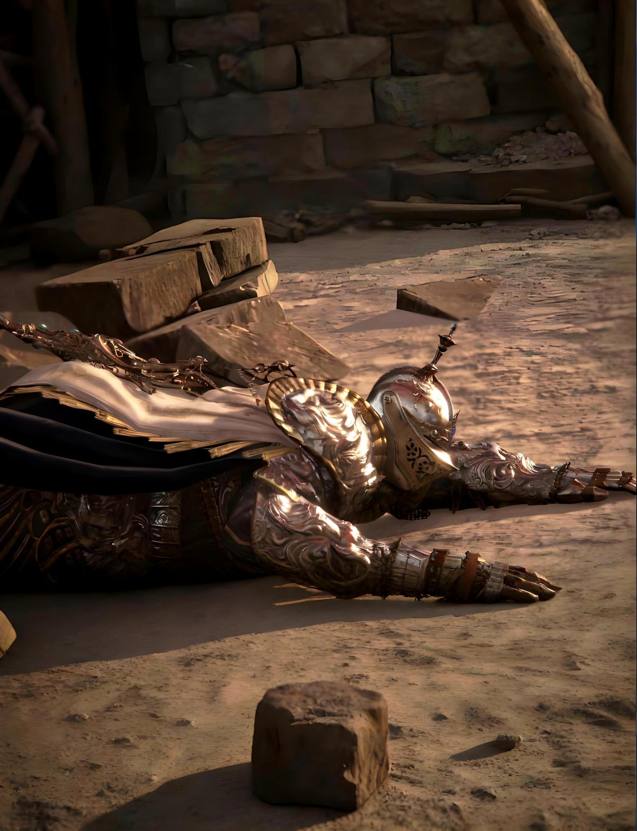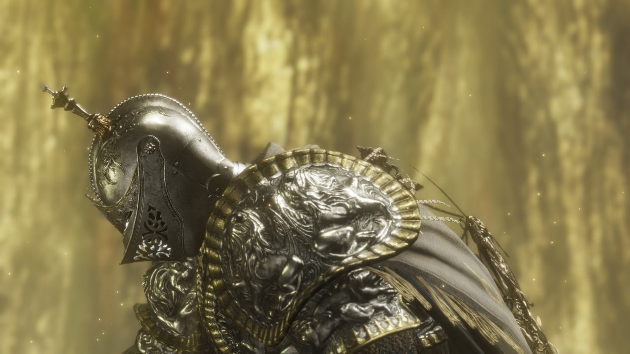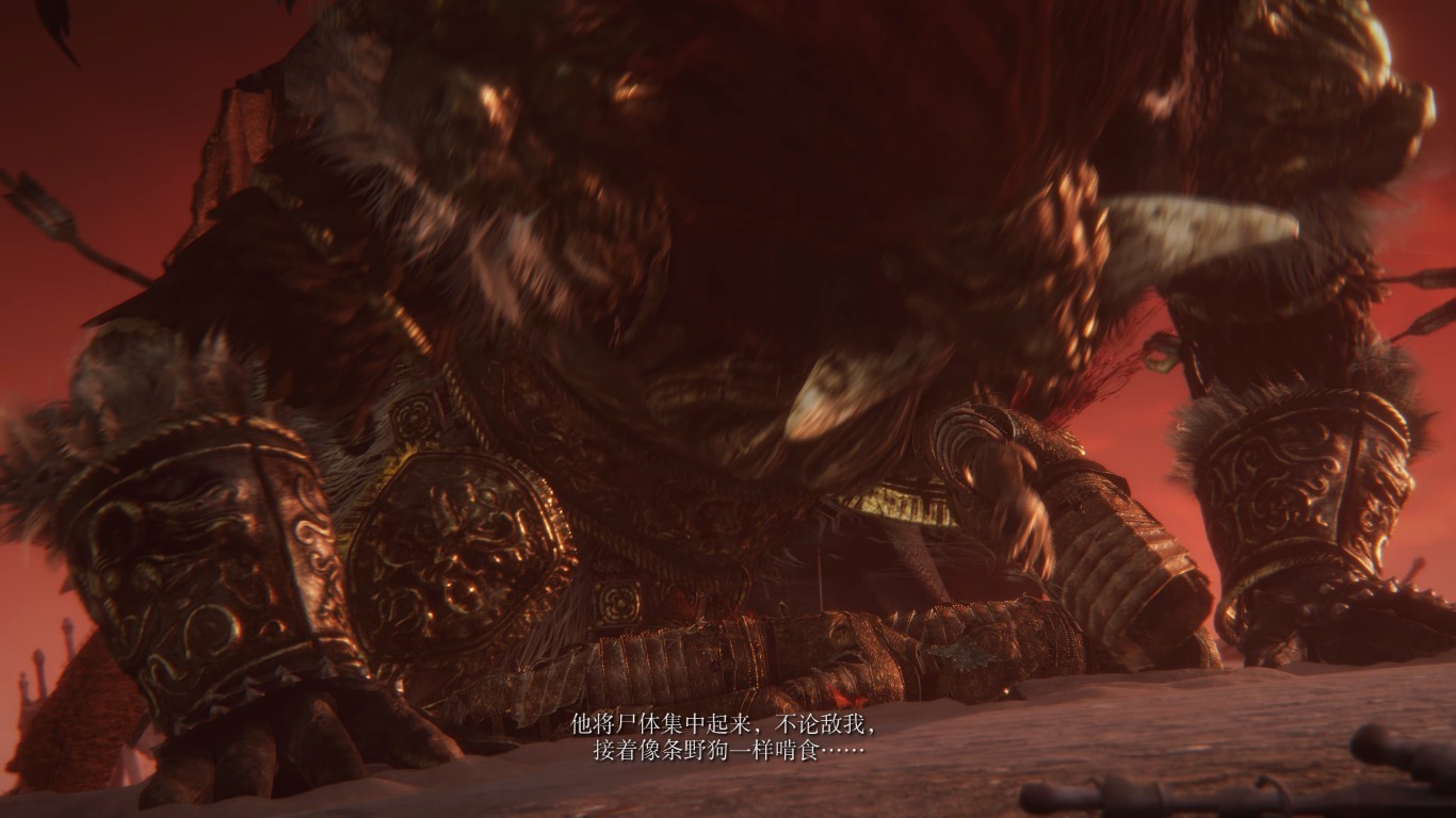 大樹守衛,黃金甲冑堂而皇之地披在他的身上,萬里塵埃乘風起一躍百金升的戰馬!黃金樹的幽影打在戟身,鋼鐵擠壓在一處的迴響,幻化爲我記憶的餘燼。當他抄起萬丈高的黃金戟,帶起黃金樹庇佑下的黃沙時,我腿都軟了……