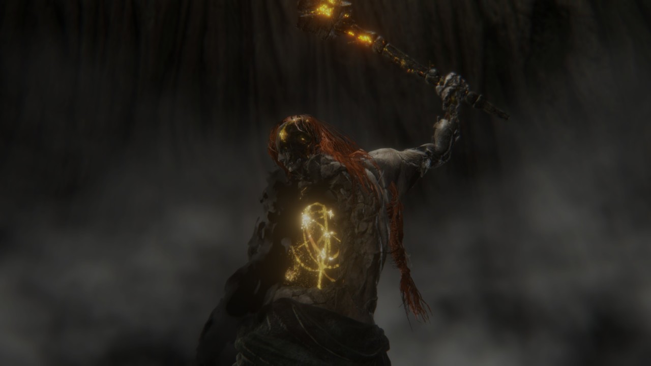 122級,瑪麗卡的身軀垂吊在半空,捏碎的大盧恩落下了滿地的金色淚滴。