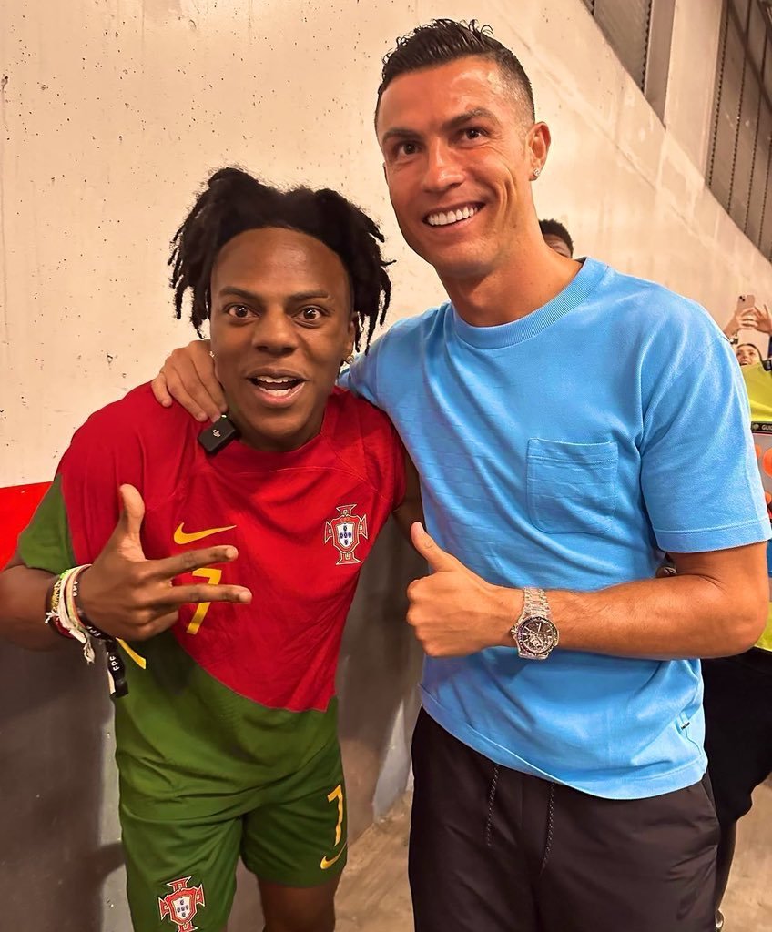 体育与名人联动,2022年卡塔尔世界杯期间,他作为球迷的疯狂表现,如为C罗欢呼、现场直播比赛氛围让他一夜爆红。他还与足球巨星Cristiano Ronaldo有过梦幻联动,包括视频通话和见面,这进一步提升了他的全球知名度。