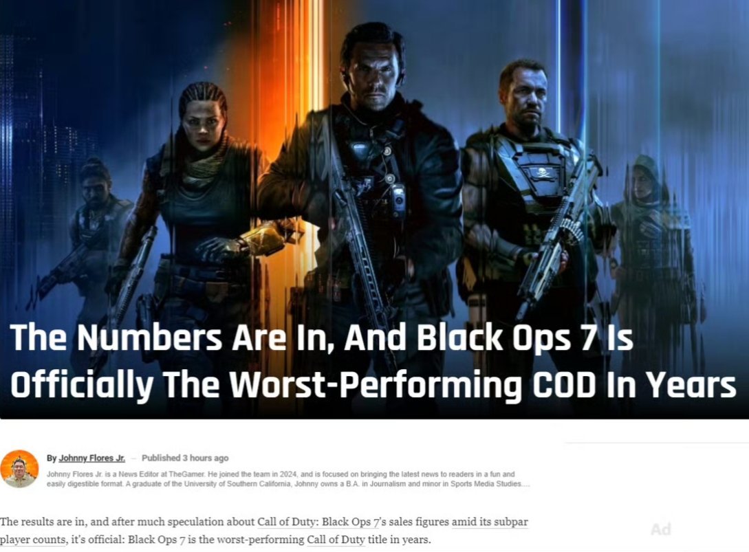 外媒Thegamer援引Circana最新数据指出,《使命召唤:黑色行动7》创下系列低迷战绩,成为2008年《使命召唤:战争世界》以来,该系列年度表现最差的作品。游戏发售初期Steam在线玩家数几乎零增长,后续数据更是持续走低,区域销量也全面拉胯——欧洲首周销量较《黑色行动6》暴跌63%,日本市场销量更是跌至系列历史谷底。