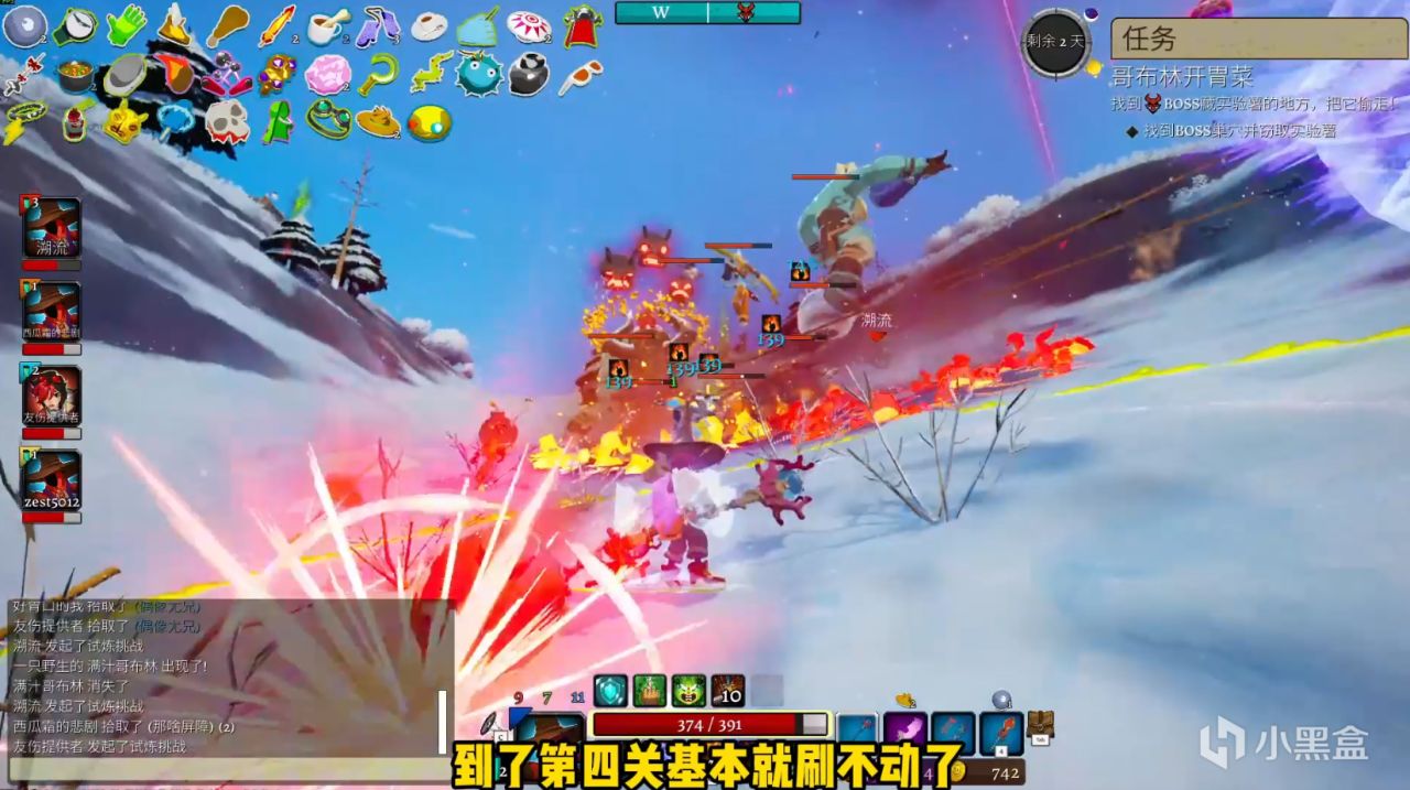 不过我感觉它这游戏目前的数值难度曲线肯定还是需要调整的啊,在多人游玩的情况下,前两关大家速刷的感觉还是很爽的,但到了第3关开始就有点勉强了,到了第四关基本就刷不动了,因为宝箱的价格以及敌人的强度提升的实在是太高了。